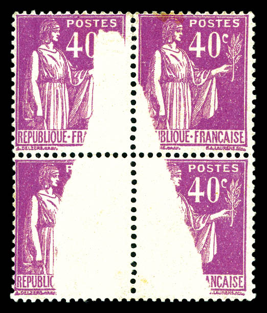 1873 imageN°281, 40c Paix: spectaculaire impression partielle sur bloc de quatre. SUP (certificat) Qualité: * (Image)