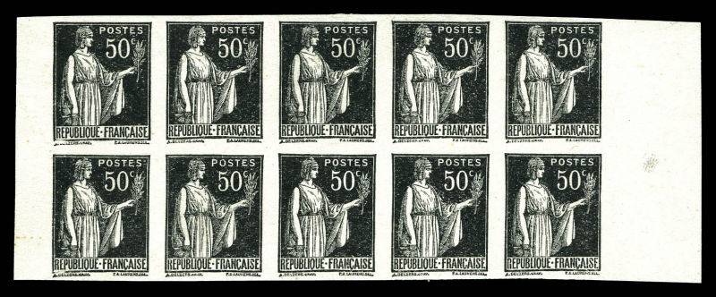1874 imageN°283, 50c Paix, essais en noir: un bloc de 10 exemplaires + 1ex bdf. SUP. R. (certificat) Qualité: (*) (Image)