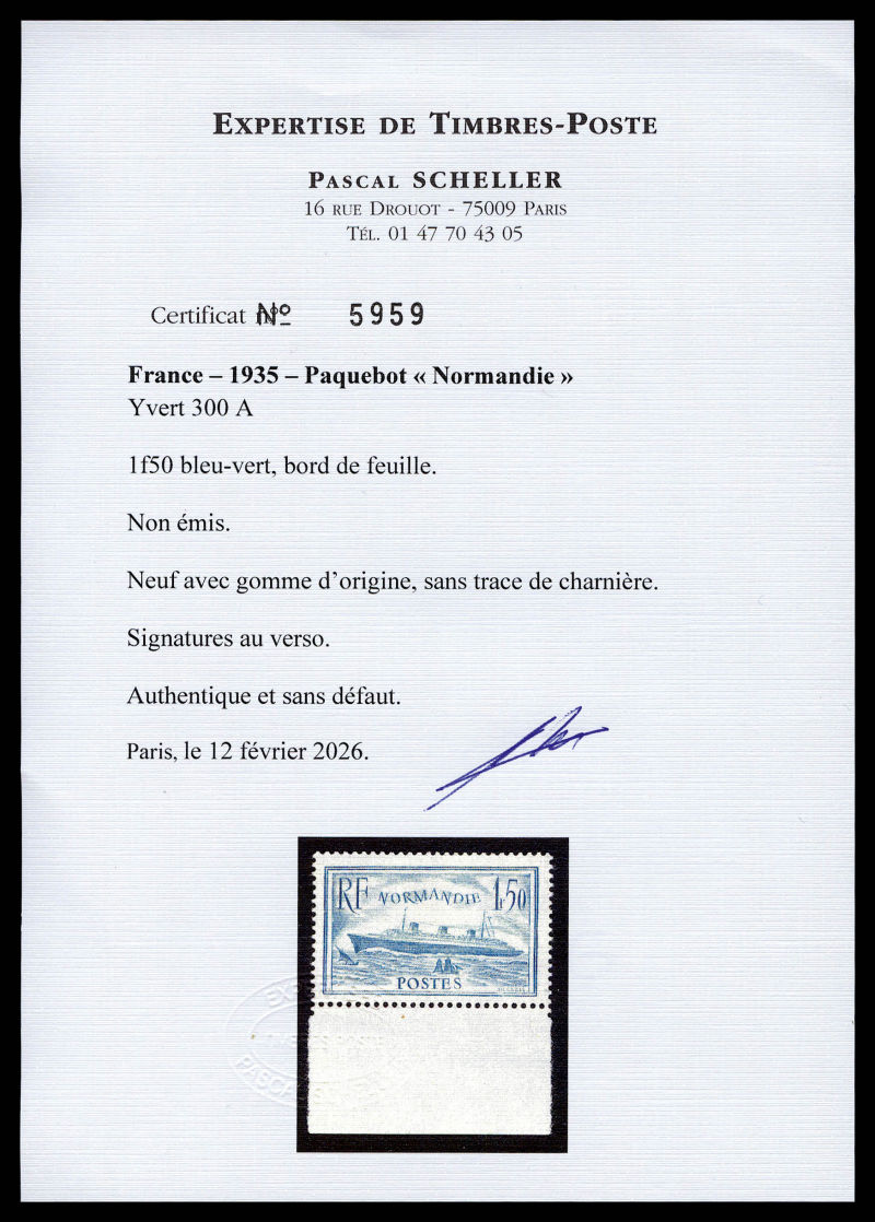 1886 imageN°300A, NON EMIS: Normandie, 1F50 BLEU-VERT, bas de feuille provenant de la seule feuille connue (25 exemplaires), FRAÎCHEUR POSTALE, RARE et SUPERBE (signé Calves/Champion/certificats) Qualité: ** Cote: 36000 euros (Image) (image2) (image3) (All Images)