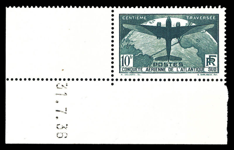 1888 imageN°321, Traversée de l'Atlantique Sud, 10F vert-foncé cdf daté du 31.7.36, très bon centrage, TTB (certificat) Qualité: ** Cote: 800 euros (Image)