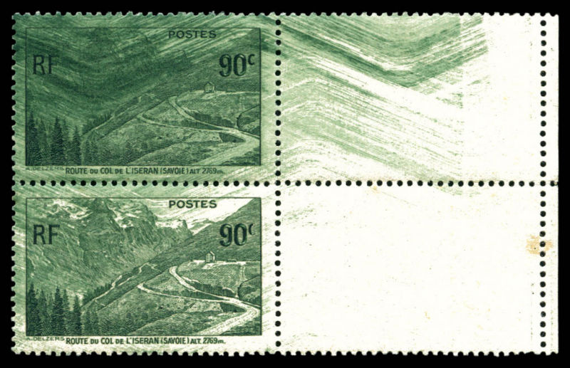 1895 imageN°358, 90c Col de l'Iseran, superbe variété d'essuyage en paire bdf. TTB (certificat) Qualité: * (Image)