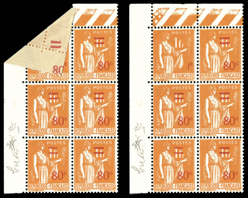 1897 imageN°359c, 80c s 1f Paix, surchargés tenant à non surchargé par pliage. SUP (signé/certificat) Qualité: ** Cote: 2100 euros (Image)