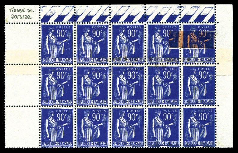 1898 imageN°368, 90c paix, impression sur raccord sur bloc de 15 exemplaires cdf avec sonnette au verso. SUP (certificat) Qualité: ** (Image)