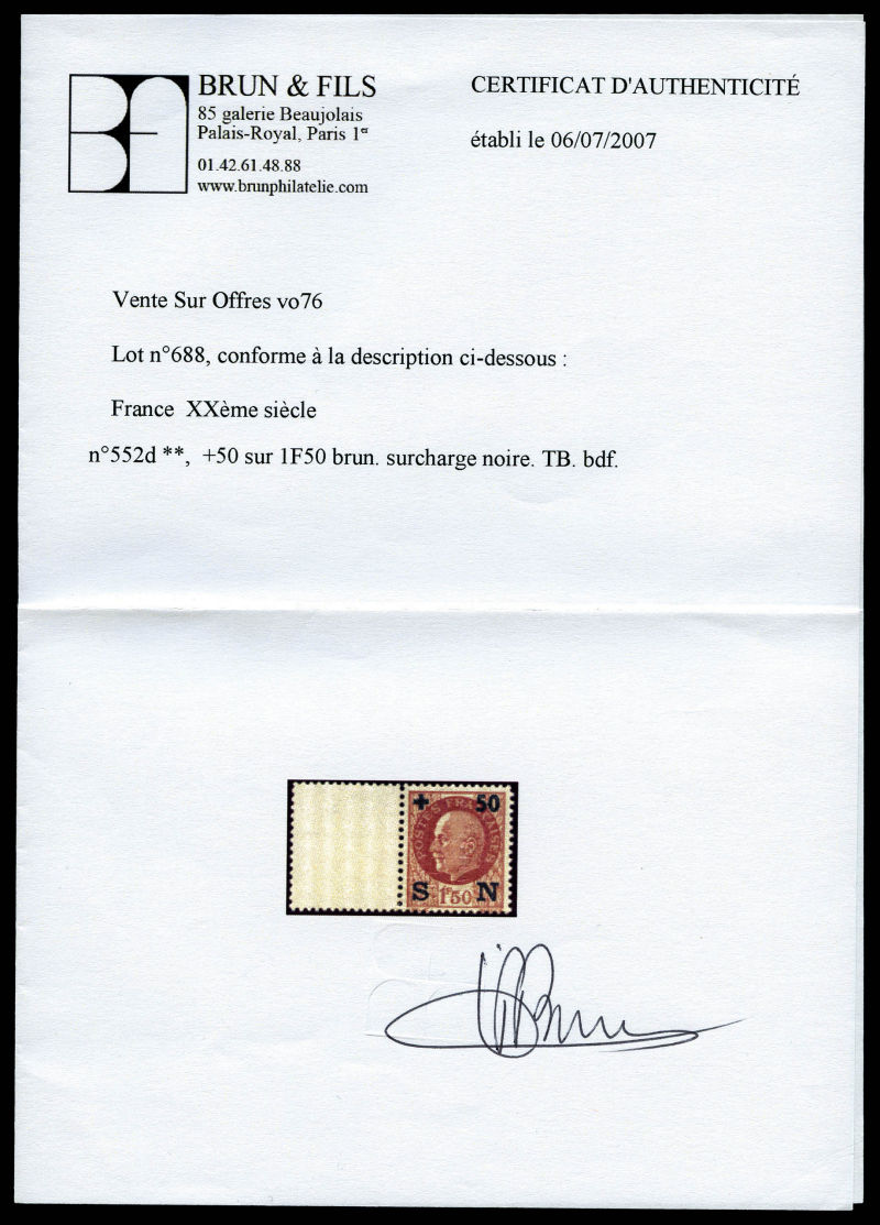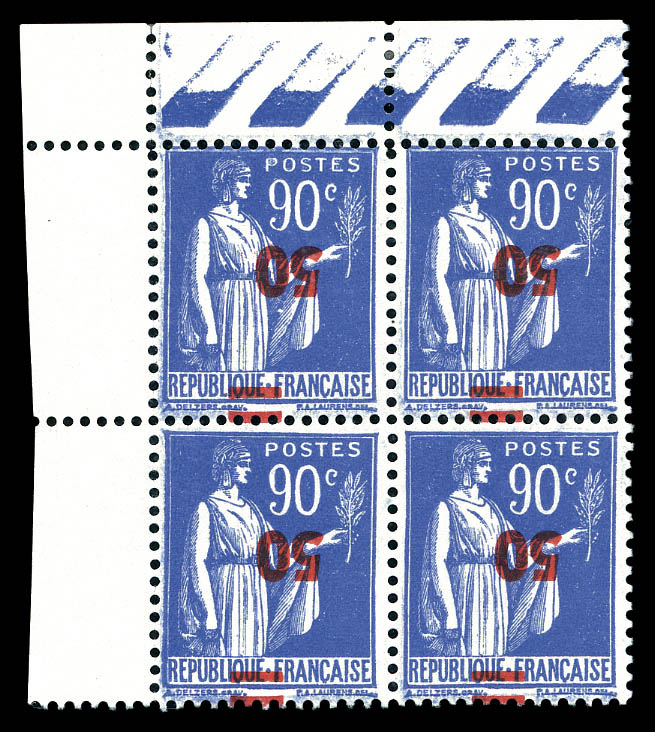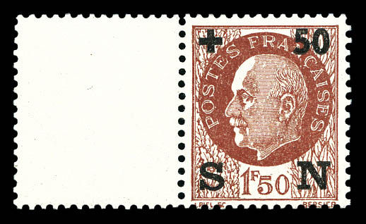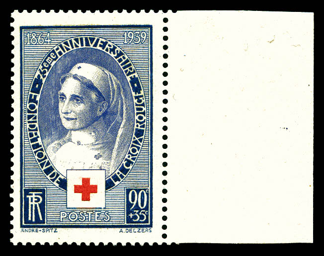 émis, Croix rouge 90c +35c noir et outremer, neuf avec gomme d'origine sans trace de charnière, bord de feuille. Qualité exceptionnelle. SUPERBE. R.R. (certificats) Qualité: ** Cote: 17500 euros (Image)