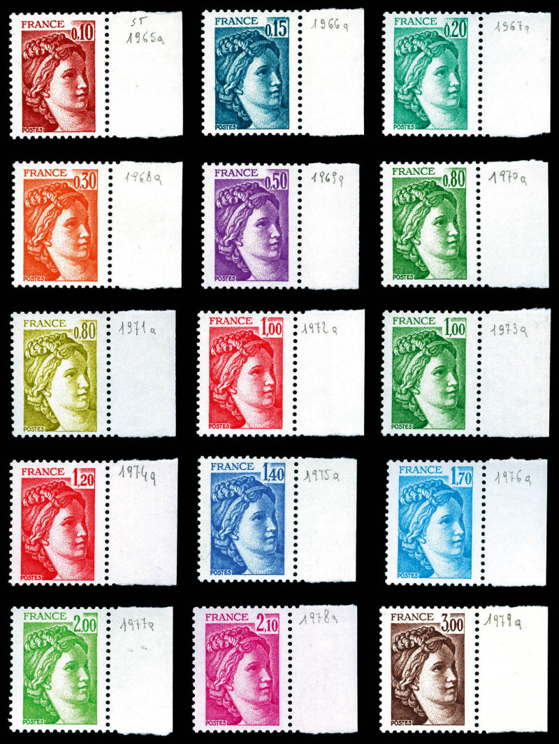 1964 imageN°1965b/1979b, Sabine, Série complète sans phosphores, les 15 valeurs bdf, TTB (signés Calves) Qualité: ** Cote: 300 euros (Image)