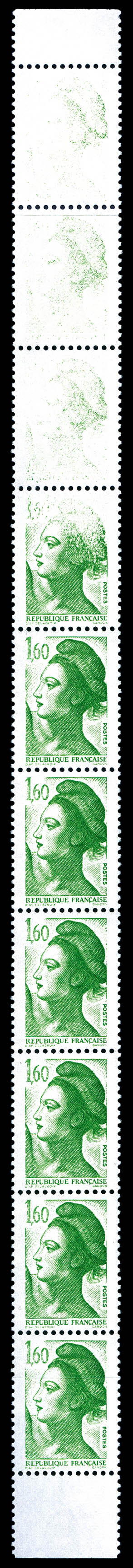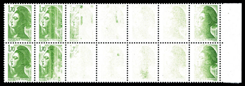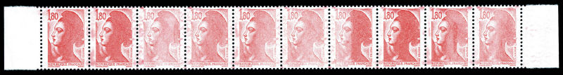 1969 imageN°2220, 1.80f Liberté: impression défectueuse en bande de 10 exemplaires. TTB (certificat) Qualité: ** Cote: 1250 euros (Image)