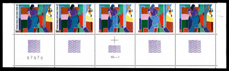 1974 imageN°2414b, Magnelli, 3 exemplaires sans légende tenant à 2 exemplaires normaux en bande de 5 bas de feuille numéroté, TTB (signé Calves/certificats) Qualité: ** Cote: 8550 euros (Image)