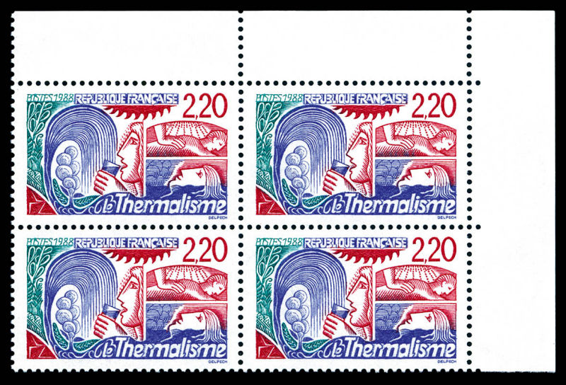 1976 imageN°2556a, Thermalisme: 2F20 rouge au lieu de bleu en bloc de quatre cdf, TB (certificat) Qualité: ** Cote: 2400 euros (Image)