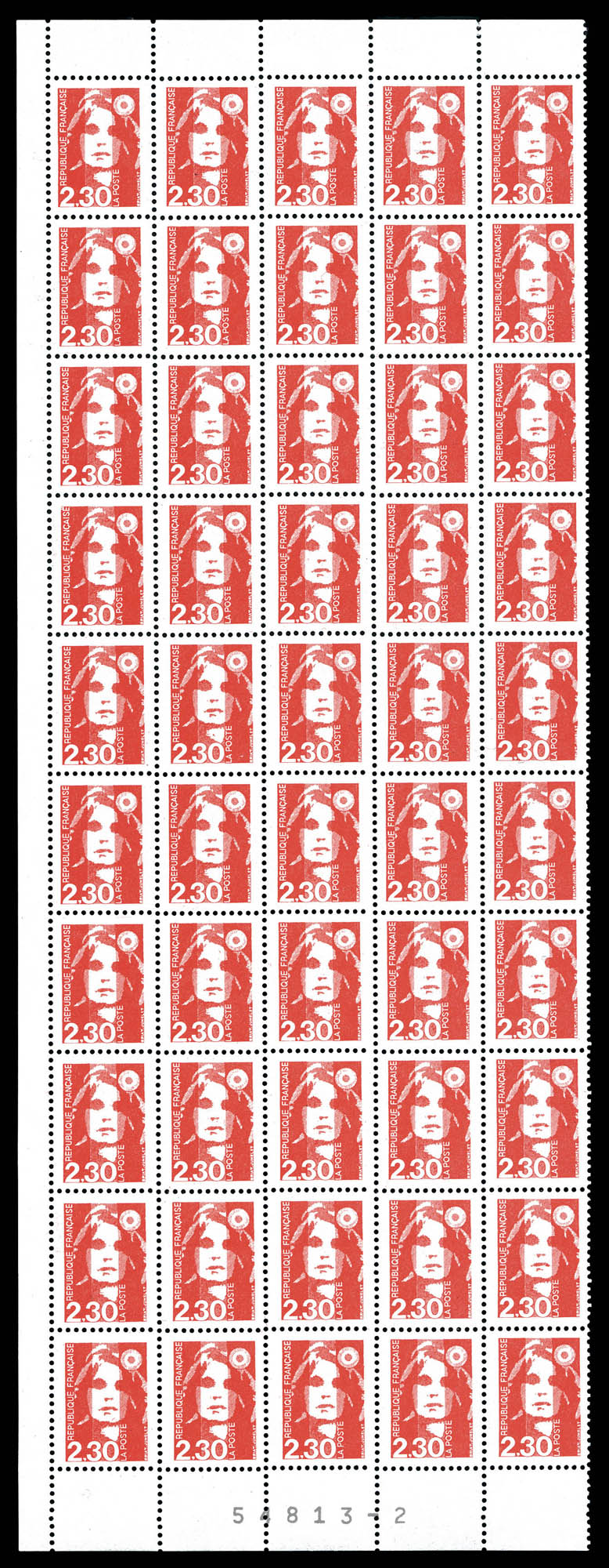 1980 imageN°2614f, 2f30 Briat, faux de Marseille dentelé 13 en panneau de 50 exemplaires numérotés. TTB (certificat) Qualité: ** Cote: 2500 euros (Image)