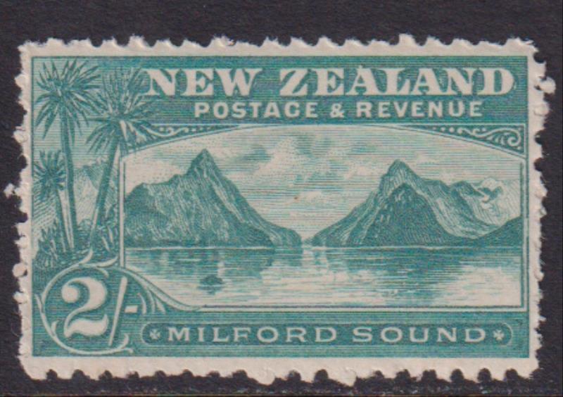 Pictured image: Lot 949 - 1902 2/- Milford, p11, laid paper. CP E20c. Cat $2000. MUH. Reserve NZ$835.