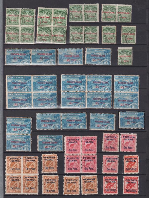 207 / imagePenrhyn 1902-29 comprehensive colln of 117 mint/MUH & FU on 8 pages. Noted 1902 2½d SG 1 mint & FU, SG 1a FU, 1903 3d - 1/- p11 set SG 14-16 mint, FU & blocks of 4 mint/MUH; 1914 EVII ½d - 1/- SG 19, 22-23 mint & FU; 1917 GV 2½d - 1/- set FU & all vert 2 (Image)