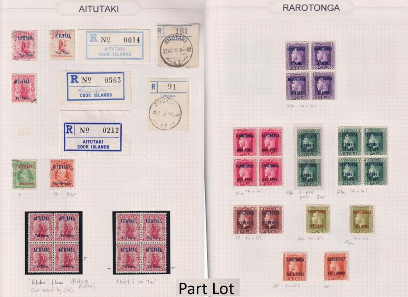 204 C/ imagePacific Isl 1910s-70s varied & unusual range on pages (150+, mostly Cook Isl, cat £750+) incl Aitutaki 1911 1/- SG 12 FU (cat £160), Rarotonga GV 2-perf pairs x 4, 1927 4d Harbour imperf plate proof pair (black, no wmk) of central vignette, Cook Isl 1970 (Image)