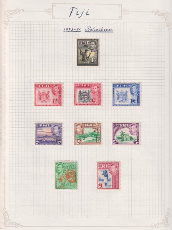 205 / imagePacific Isl 1935-93 mainly mint colln in Seven Seas hingeless albums: 1) Fiji near complete mint/MUH, incl 1938 GVI Picts set of 22 (excl 6d Die I) mint; 1954 & 1959 QEII Picts sets mint; 1969 defins sets MUH & FU. 2) Nauru complete mint/MUH from 1937 in (Image)