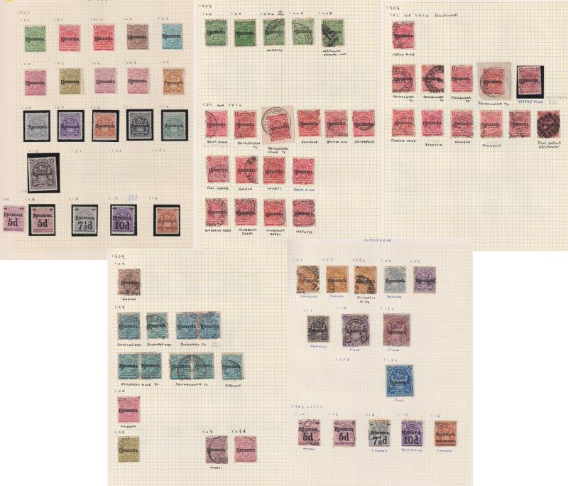 210 / imageRhodesia 1909 mint & used range of 80v with RHODESIA ovpts on 5 pages, incl £1 (SG 113) mint & SASARE MINE cancel (very rare) on 1d. SG cat £1140. (Image)