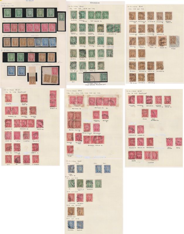 216 / imageRhodesia 1913-22 2d - £1 Admirals double plate printings, used range of Dies, perfs & shades etc, + odd fiscal. Die I 2d - 2/- x 15; Die II 2d -10/- x 48; Die III 2d - £1 x 77. Also, page of 1917-24 surcharges & white paper varieties (23v) mint & used. (Image)