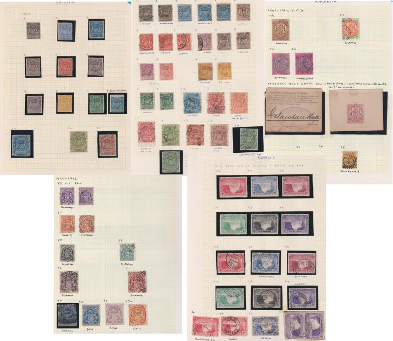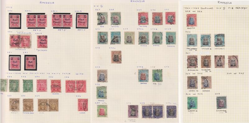 209 / imageRhodesia 1892-1913 mint & used, incl 1905 Victoria Falls mint set & also ½d-2/- Double Heads mint & used. 110v on 4 pages cat £3860. Also, Northern Rhodesia 25 various mint, cat £246. (Image)