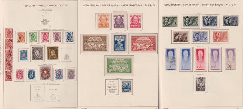221 / imageRussia 1865-1944 mainly used colln in Schaubek album, with a useful range of paper, wmk & perf types. Some dupn & many pencil annotated SG No's. Noted various Airships mint & used & 1933 Stratosphere Balloon Record set (SG 634-6) mint. Some mixed condit (Image)