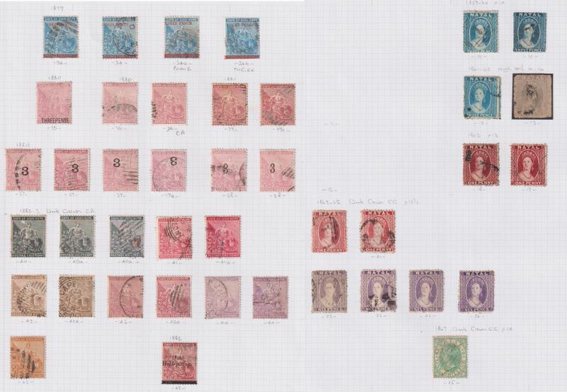 225 / imageSouth African provinces 1864-1908 mint & used, annotated as per SG with shades & varieties, & some dupn. CGH cat £1900+ & incl a page of pmks; Natal cat £2100+ (incl EVII ½d with double perfs); Orange Free State cat £300+; Transvaal cat £700+ & a few Gri (Image)