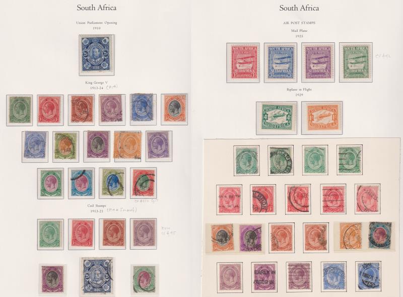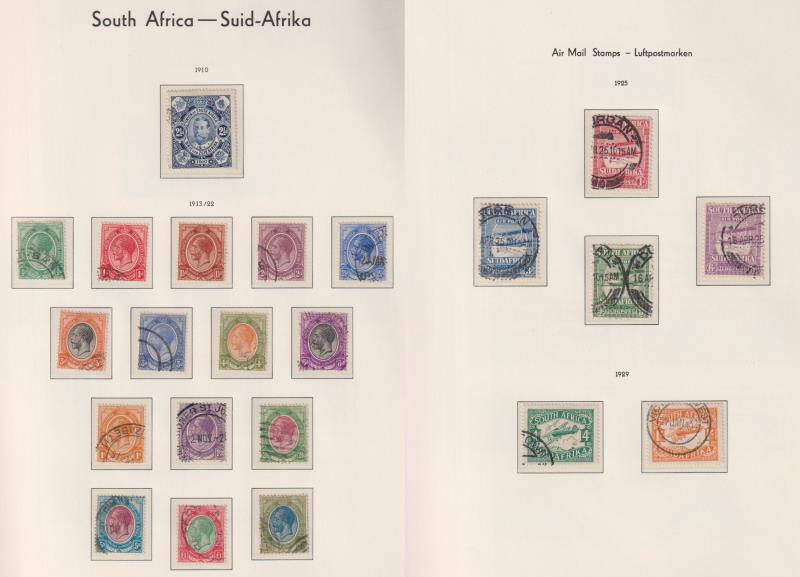 227 U imageSouth Africa 1910-89 used colln in L/H hingeless album with slipcase. Noted 1913 GV set FU; 1925 Airs (9d GU); 60+ bilingual pairs (some vertical pairs), reasonably complete 1970s & 80s. (Image)