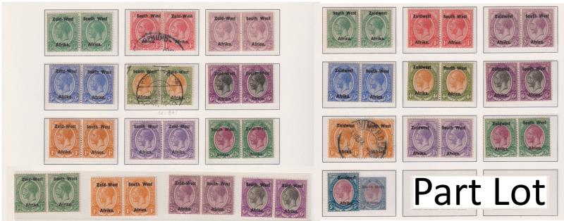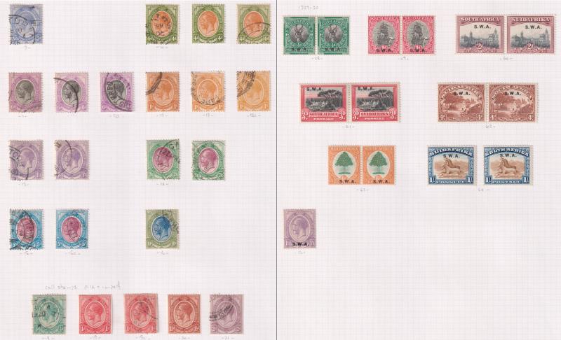228 / imageSouth Africa 1911-60 mint & used with shades & perf varieties as well as bilingual (mostly horiz) pairs. Also, similar South West Africa. Cat £1800 & £1200+ respectively. (Image)