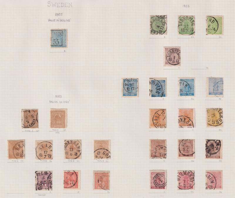 232 / imageSweden 1855-1962 mostly used colln in album with perf & wmk varieties etc, some dupn & variable cond, 783v. Cat £3300+. (Image)
