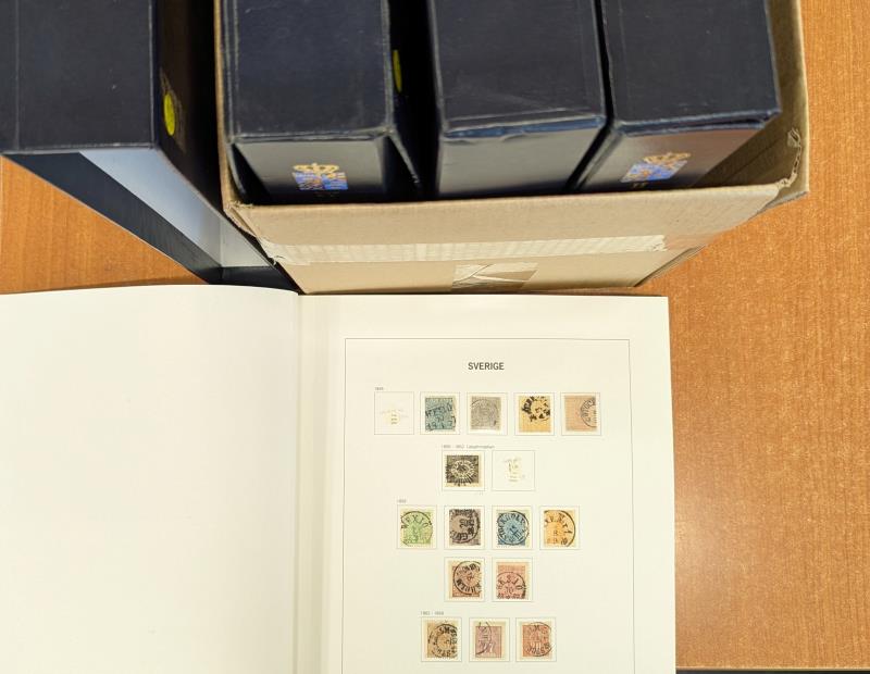 233 / imageSweden 1855-2015 comprehensive mint & used colln in 4 Davo albums with slipcases. Noted 1855 Arms 6s (faults), 8s GU & 24s (cv £2,500) FU, 1916 Postage Due stamps with Clothing Fund surcharge set of 11 (top val mint; others FU), UPU 1924 & 1925 sets FU, (Image)