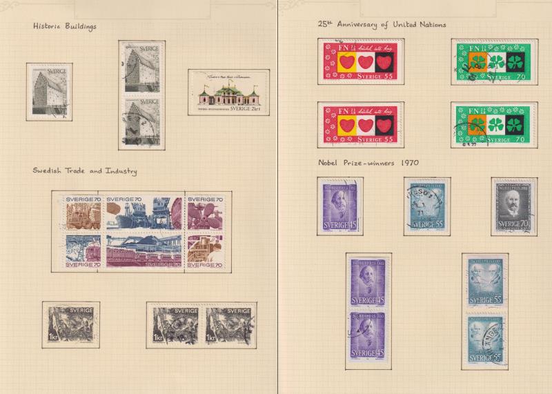 234 U imageSweden 1970-2020 near complete colln of used & CTO on pages. Incl 68 sheetlets/m/ss, 62 booklet pane blocks, 174 booklet joined pairs & 17 strips of 5 booklet stamps. SG cat £6800. (Image)