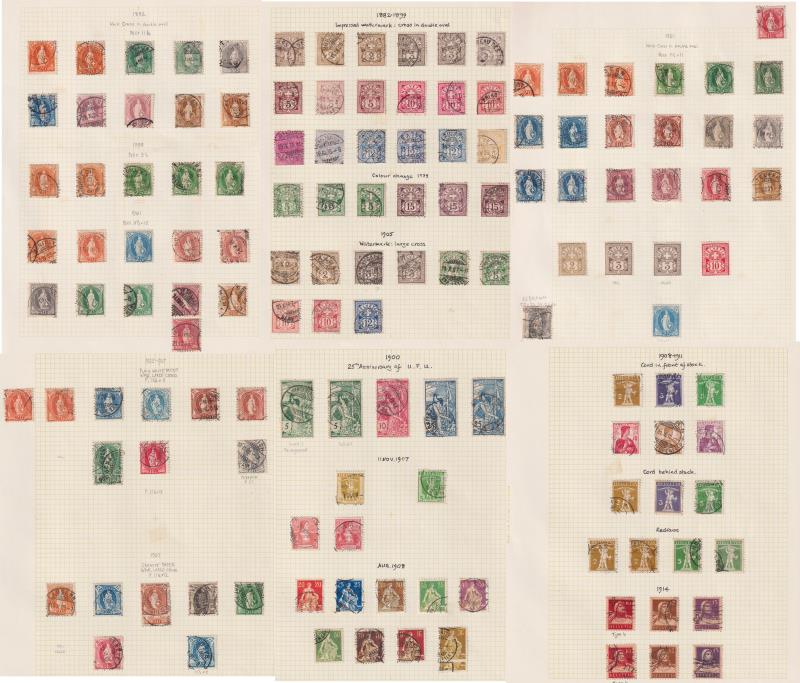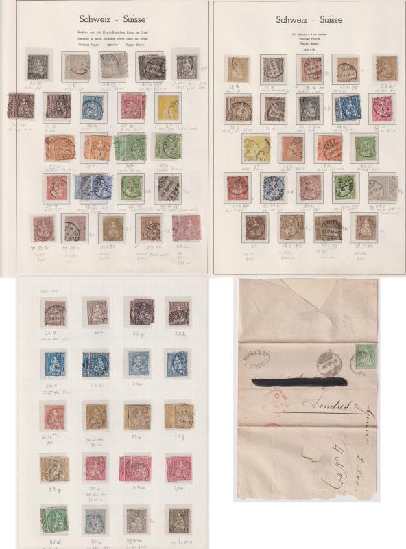 235 / imageSwitzerland 1850-1983 mostly used composite colln from various albums on pages. Commences with 6 pages of Seated Helvetia imperfs (35v) with various coloured silk threads, as well as perf (50v) & 2 different Hotel stamps (cat SFr7600+). Then a comprehens (Image)
