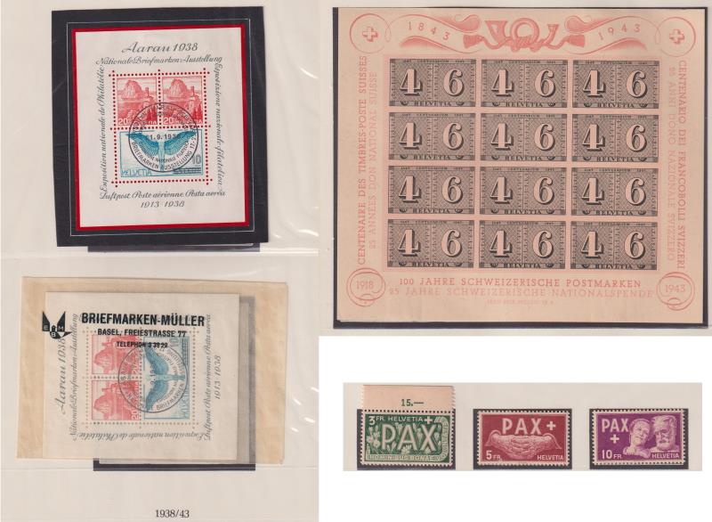 240 / imageSwitzerland 1938-61 mint & used colln in Lindner album with dustbox, comprising a useful range of airmails, national fêtes, Pro Juventute issues & 2Fr-10Fr Peace mint. Also, various 1960s mint on 3 double sided Hagners. Cat £1850+. (Image)