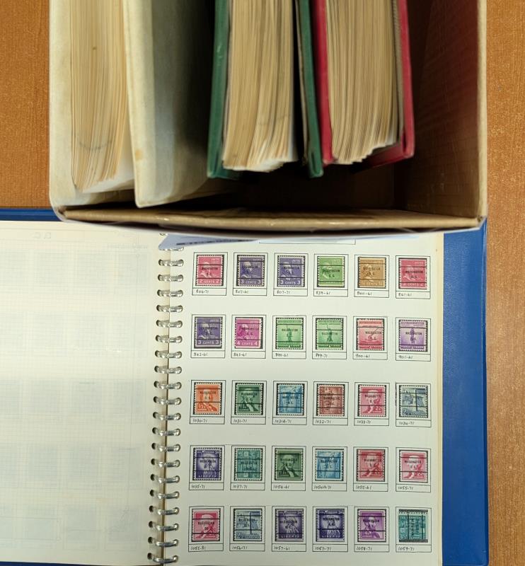 250 M imageUSA 1920s-80s comprehensive US Bureau Print precancels colln of over 7,000 diff precancels on 363 pages sorted by city within state. Valued by vendor using '1997 Precancel Stamp Society Catalog' (incl with lot) at US$2500. Mint. (Image)