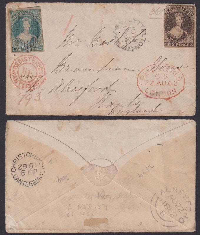cover missing. Has Registered Canterbury NZ double circle marking m/s 485 (believed only recorded example, see RPSNZ Vol VII, p