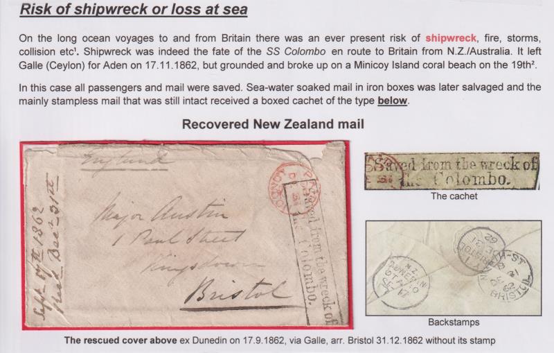 1862 Wreck mail, cover h/s "Saved from the wreck of the Colombo" in black, ex Dunedin (17.9.1862) arrived Bristol 31.12.1862
