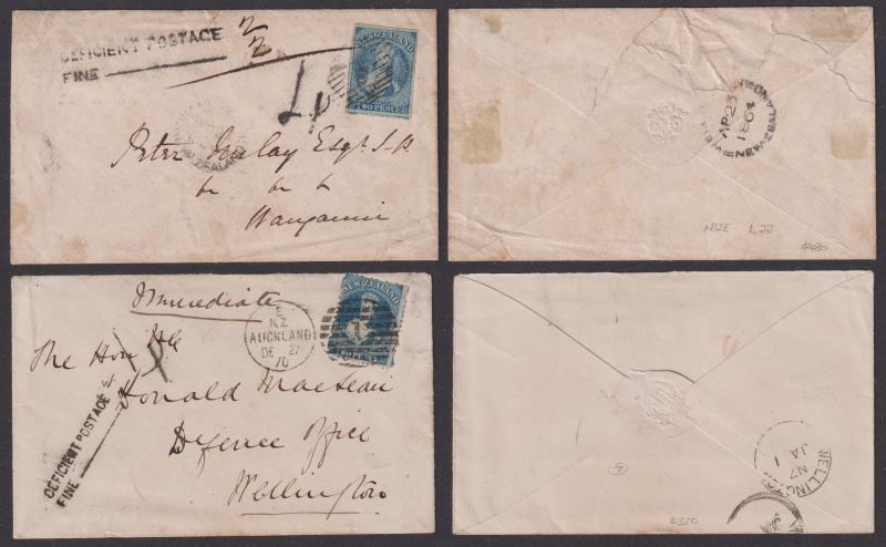 1864 & 1870 FFQ covers (2) with scarce postage due markings: a) 1864, franked 2d blue imperf (4 huge margins), Wellington to