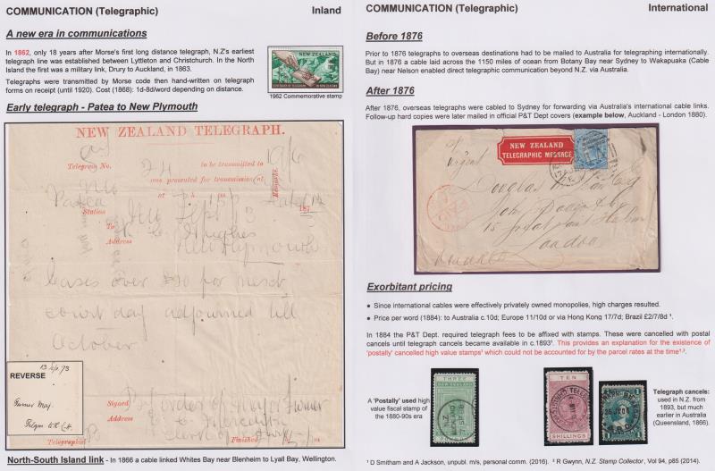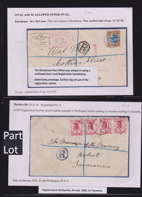 clerk; a NZ Telegraphic Message (in reg) cover to London bearing a 6d blue FSF (Auckland duplex 17 AU 80) & a "paid" in red cds.