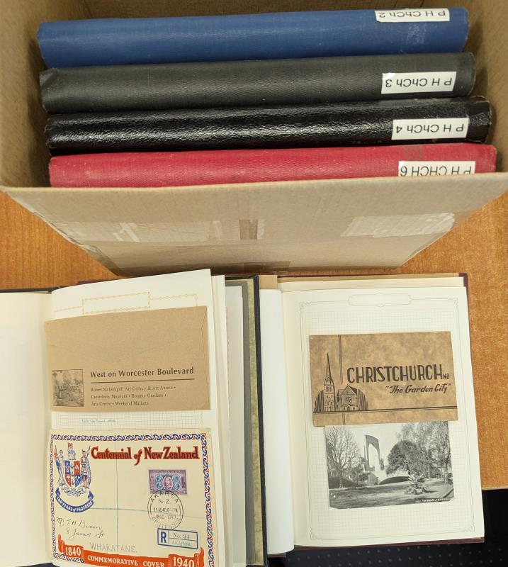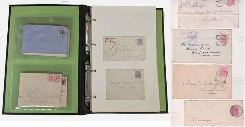 1890s-1990s Christchurch CPO (& related) postal history colln of approx 500 covers & p/cs in 6 old springback albums.