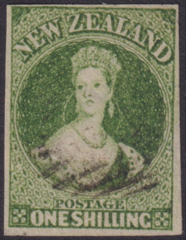 extensively repaired, reperfed & repainted. Tiny thins by Z of New Zealand. RPSNZ cert (2017). SG 26. Cat £8000. FU. (Image)