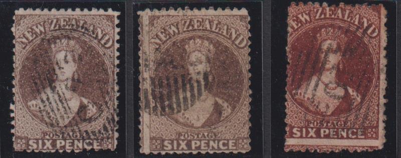 6d x 3 black-brown, brown & deep red-brown shades, p13, star wmk. 6d deep red-brown o/c, several slightly toned perfs. SG