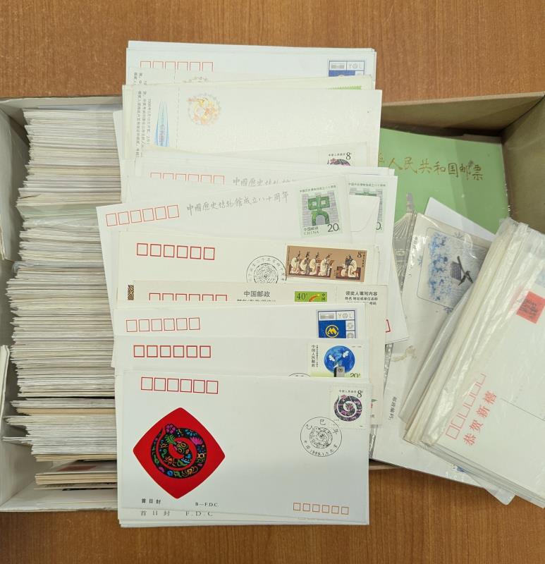 43 / imageChina c1989-97 extensive accum of stamps, FDCs & postal stationery envelopes. Stamps 1992-7 with many as blocks/part sheets. Many 1000s. Many 100s FDCs & postal stat used & unused with no obvious duplication. (Image)