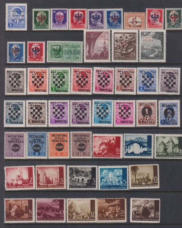 50 / imageCroatia 1941-5 colln of mint & used on annotated album, Hagner & s/b pages. Noted 1945 Croatian Storm Division set of 3 mint (cv £475 for MUH). Rather disorganised with some stamps adhered to page. Also incl 34 pages of Yugoslavia & constituent states (Image)