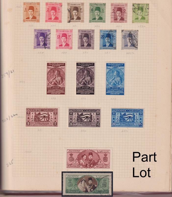 53 / imageEgypt c1867-1970s colln/accum on pages/Hagners & in glassines. Good range mint & used. Noted used: 1938 £1 King's 18th Birthday; 1936 50p & £1 UPU on piece; most of the key 1930s commems. About 1000 stamps. Some duplication, untidy. (Image)