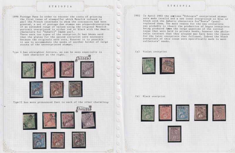54 / imageEthiopia 1894-1974 near complete specialised colln of mint or used sets in mounts on annotated pages in 2 albums. Noted 1902 ovpts to 8g mix mint & used; 1903 ovpts to 4g mint; Postage Dues 1905 "T" ovpts part set of 4 " "Tax a Percevioir T" set used, 19 (Image)
