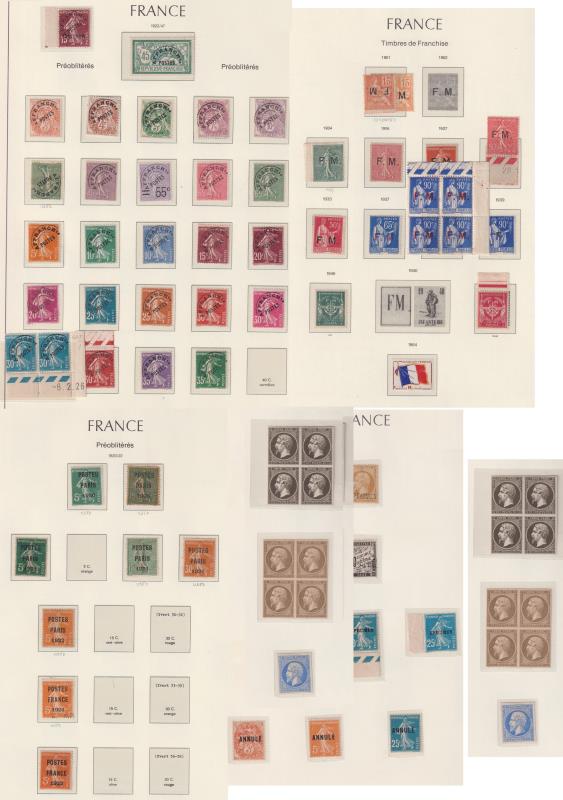58 M* imageFrance c1860-1998 in depth “back of the book” mint/MUH colln, in a L/H hingeless album with dustbox. Noted various 1920-22 Paris Post mint (€1030); Sower & Blanc pre-cancels (€2400+) MUH; 1863-1983 Postage Dues (£1400+) mostly MUH; military franks (incl (Image)