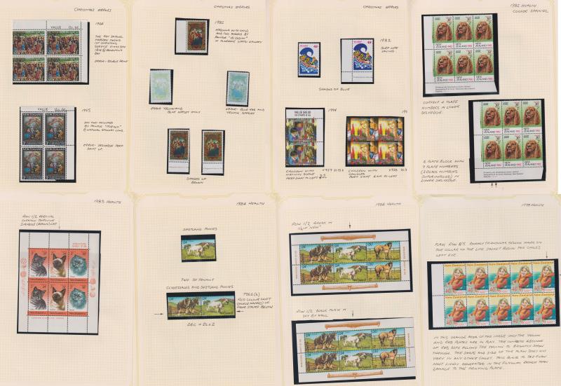 642 * image1964-98 Christmas errors & varieties: 1964 2½d value block of four with black colour misregistered; 1965 3d value block of four with double perfs; 1982 18c x 2 diff shades, also 2 different offset errors; 45c x 2 diff shades; 1994 45c vertical pair & $1.5 (Image)