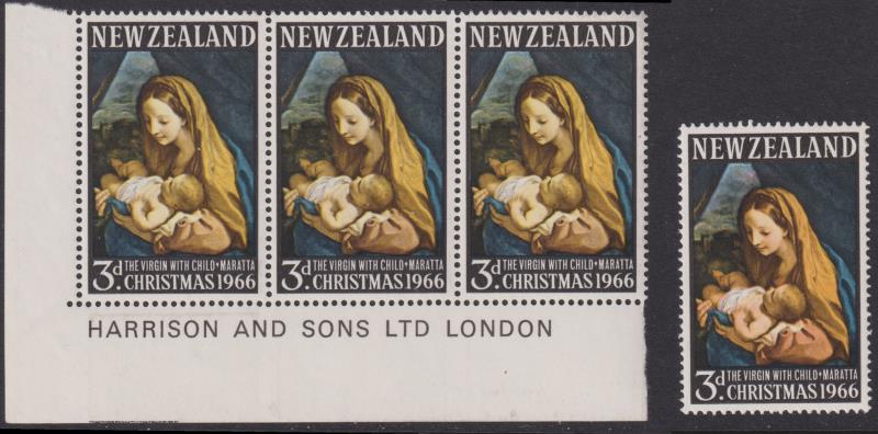 644 * image1966 3d Christmas lower L/H corner horiz imprint strip of 3, missing magenta colour (with normal). CP SC7ay. Cat $2250. MUH. (Image)