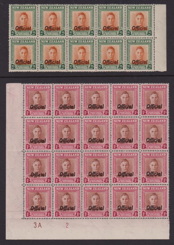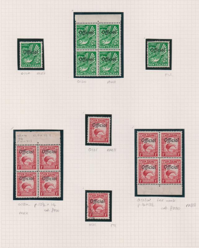 p13½ x 14 SG O115a MUH (cat £900), 1d p14 x 13½ invtd wmk SG O121w, 1½d SG O116 MUH, 1½d SG O122 MUH, 2d SG O123 plates 1A & 3B pla