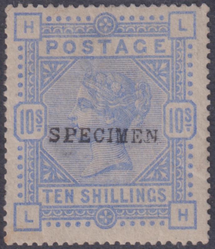 1884 10/- pale ultramarine, "SPECIMEN" ovpt (SG type 9), white paper. SG Spec K14s. Cat from £550. (Image)