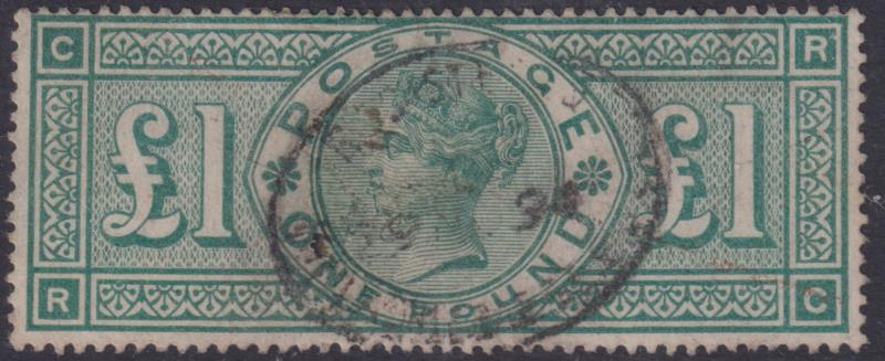 1891 £1 green. SG 212. Cat £675. GU/FU. (Image)