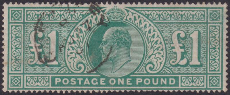1902 £1 EVII dull blue-green, DLR printing. SG 266. Cat £700. FU. (Image)