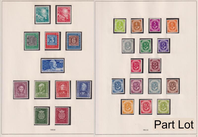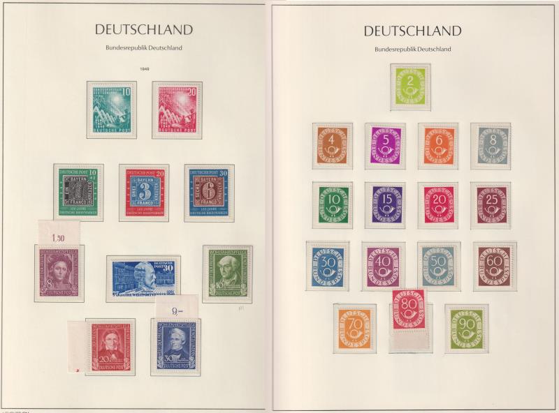 83 * imageGermany-West/Germany 1949-2000 virtually (99%+) complete MUH colln on hingeless pages in 2 L/H springback albums. Superb condition throughout (to highest German standards!) incl all early issues complete, eg: 1951-2 2pf-90pf Posthorn defin set (cat £3000 (Image)