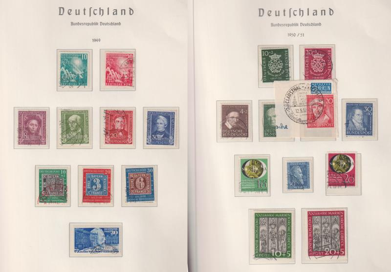 85 U imageGermany-West 1949-70 in Lindner hingeless album: reasonably complete fine used colln with most of the difficult early 1950s commems (eg: Stamp Centenary, St Mary’s Church, & Beethoven m/s etc) present, cat £2660+. Also, 1970-89 continuation (cat £580+), (Image)